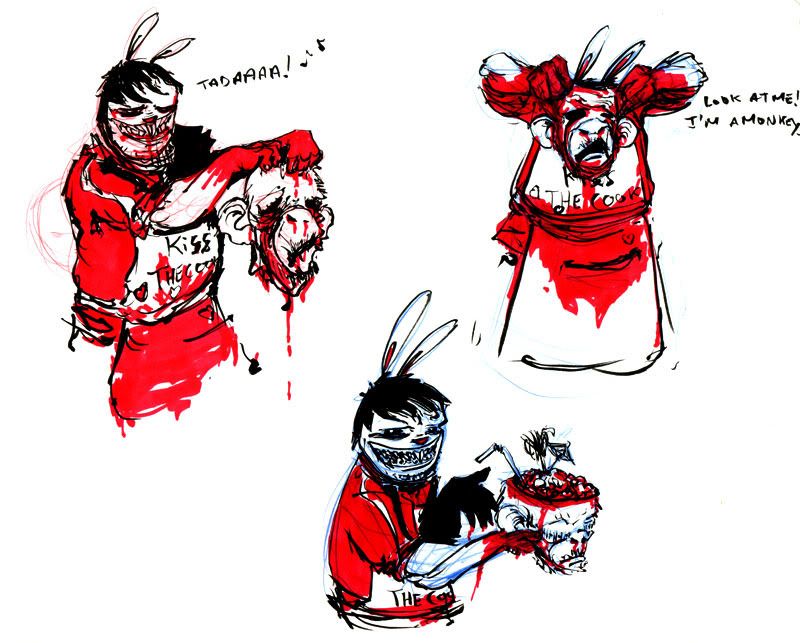Non alors il faut savoir que ces petits dessins mettant en scene des singes et des lapins, sont une boutade avec mon pote Mehdi ! Il fait de meme de son coté, je vous posterai ses amusements si il est d'accord ^^ (ah bah oui, faut savoir que lui, il est tres singe)